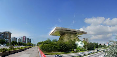The project was created precisely with notions of Serbia. Therefore, the building looks like and at the same time on the hill, and a mushroom and fortifications. The architects propose to build it on the green island in Block 39. In addition to the building in its territory assumes the existence of the park and waterfall.